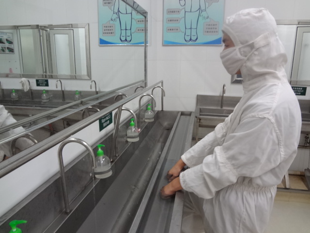 進(jìn)車間前進(jìn)行嚴(yán)格消毒